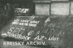 Dennoch ist sie nicht die "Erbauerin" der im Hintergrund stehenden Ziegelwand, sondern bleibt durch ihren "weiblichen Beitrag" innerhalb der ihr zugedachten Rollengrenzen. Diese Wandzeitung ist zudem ein Beispiel für die lang anhaltende Aktualität des bildlichen Motivs des "Wiederaufbau". Wandzeitung der SPÖ, 1963