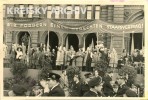 Plakatträger im Einsatz für die Wahlpropaganda in den Straßen Wiens. Auf dem Foto zu sehen: Plakate der bürgerlich-demokratischen Partei, darunter eines, das sich an Hausgehilfinnen richtet.